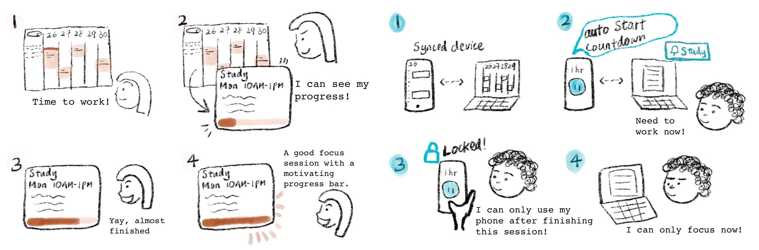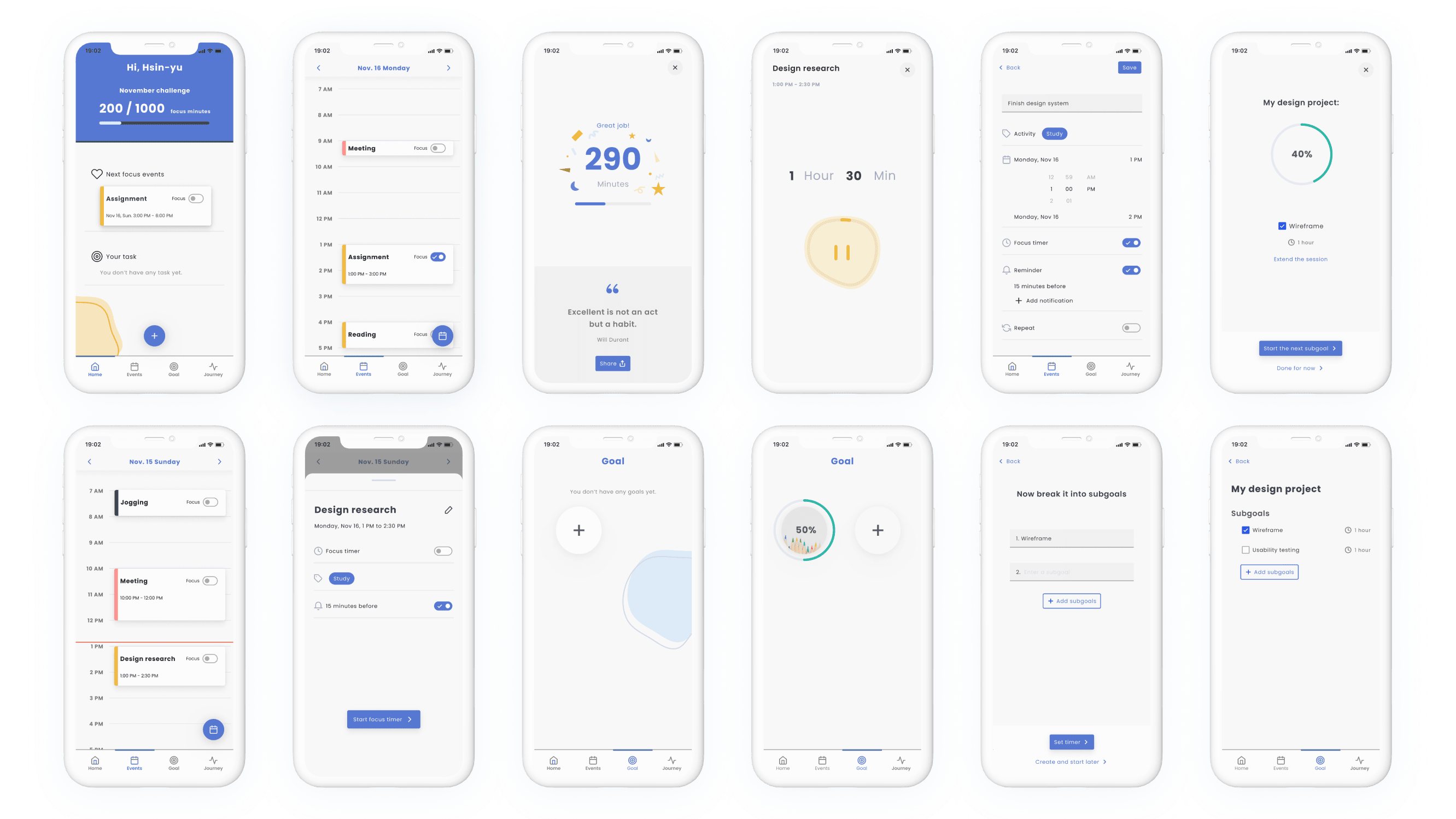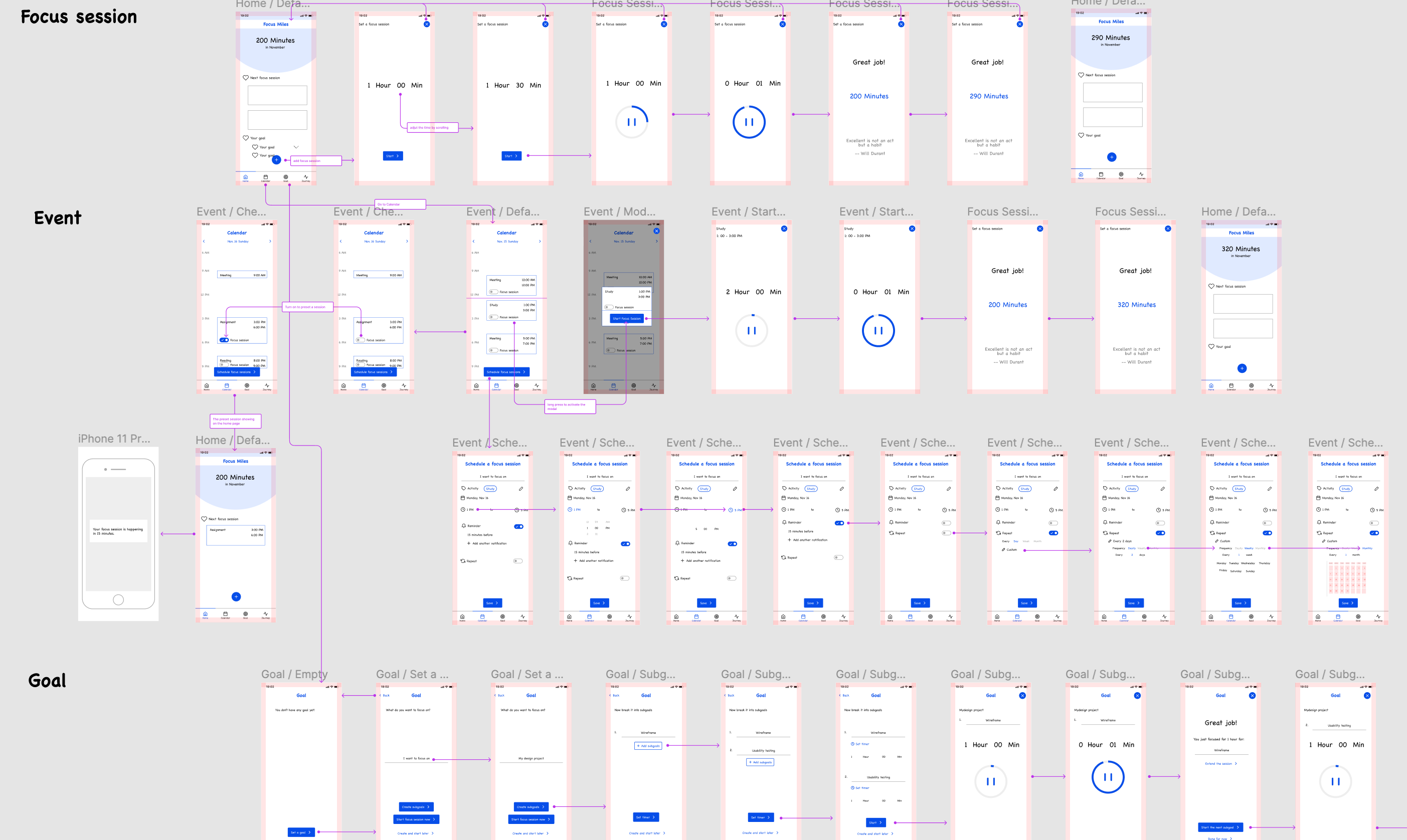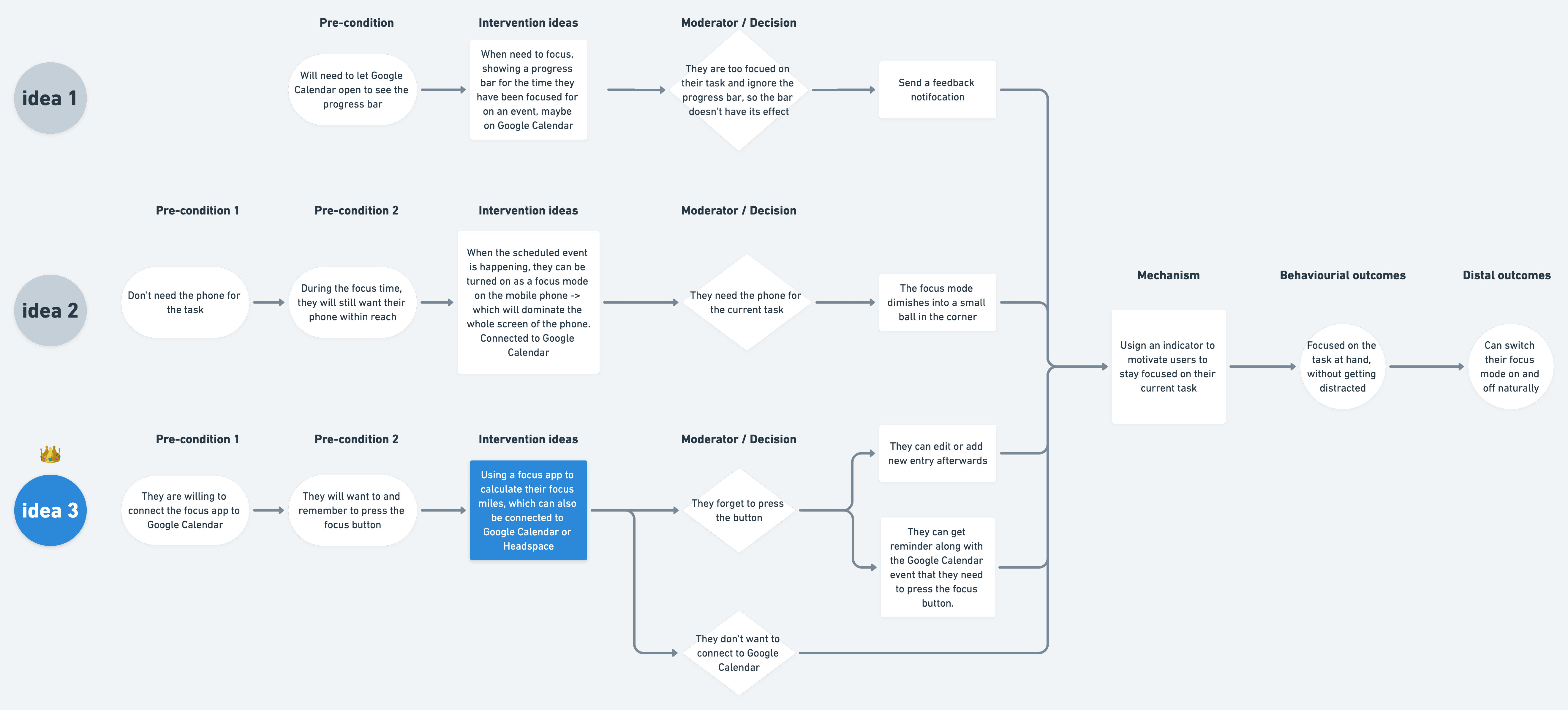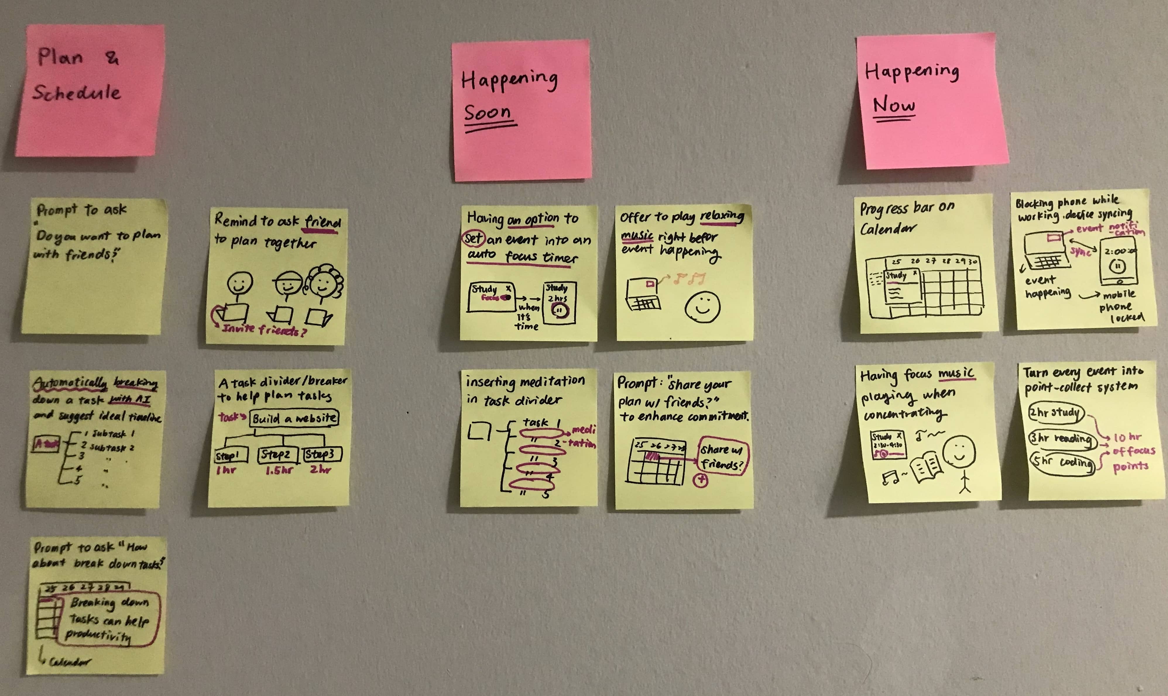| 2. Happen soon | Tmotion and focus state fluctuate drastically | ➡️ | Design needs to bridge the gap between digital calendar and focus mode | |